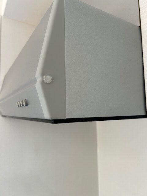 キッチンの扉を開けると当たるのでレンジフード側面に設置 🙂