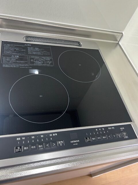 換気扇はADRタイプ、2口IHコンロ、扉はスムースホワイトライン把手