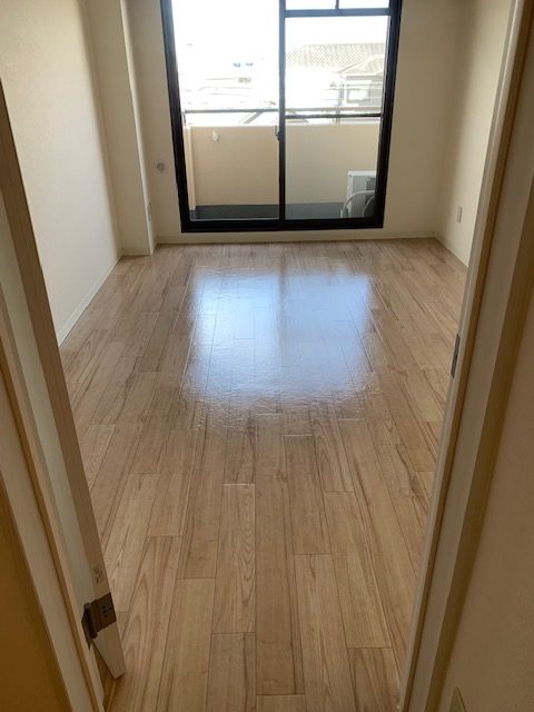 木目の美しいクッションフロアです!ソフト巾木もアイボリー系にしてお部屋も明るくなりました、入居が増えるのも間違いなし!