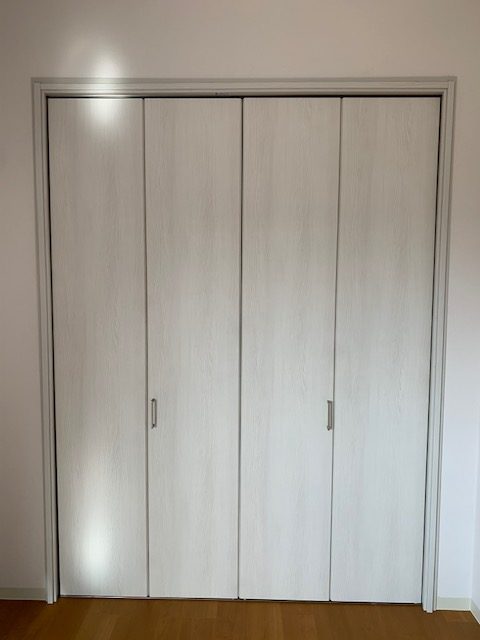 古いクローゼットの扉3枚をアイボリー木目調2枚にしてスッキリ!