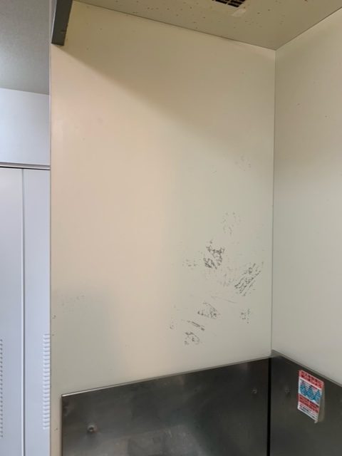 キッチンのパネルの一部の状態がかなり悪くなってきましたのでダイノックシート貼りました。施工手順は、清掃→プライマー剤塗布→貼り作業です。前面貼るとコストがかかるので今回はミニキッチン左側パネルのみの施工です。
